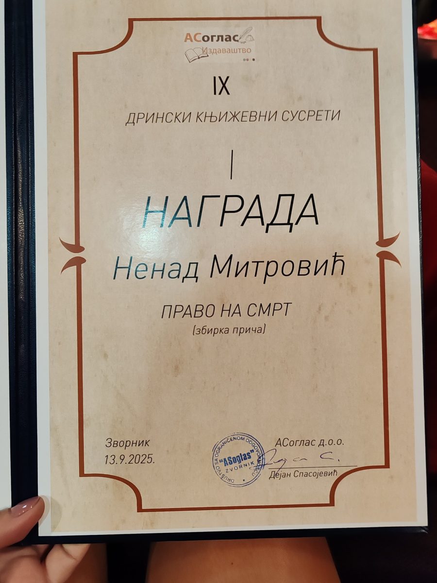 Jedan sjajan vikend u Zvorniku, posećena manifestacija „Drinskih književnih susreta“ gde sam primio prvu nagradu za najbolju zbirku priča.