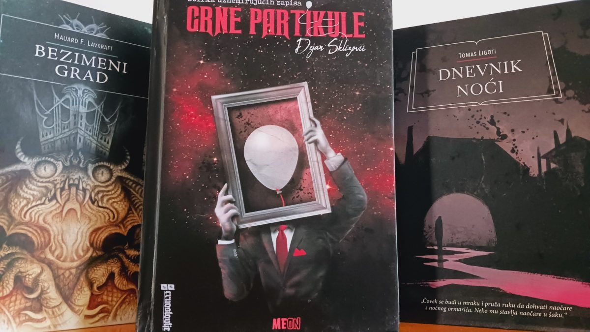 Šalu na stranu, naravno, veoma mi je drago da sam otkrio i ovu drugu maštovitiju i razigraniju Sklizovićevu stranu, gde autor prosto ne haje koliko će reči potrošiti na opisivanje jednog te istog osećanja – ljubavi prema mraku i noći – pisanje koje pokazuje kako horor proza može dosta toga od inspiracije crpeti i iz fantastike, groteske, filozofije, istorije umetnosti, religije i mitologije.U njegovoj prozi svi likovi su usamljenici kojima se gadi svet, akoliti neobičnih sklonosti, praktikanti mračnih kontemplacija. Oni ne veruju u nauku, samo u okultno. To su redom niktofili – žive za noć, mrak, osamu. Bez porodice su i jačih društvenih veza. Pokazuje se da takvi duhovi lakše propadnu kroz procep itmeđu svetova, a da niko iz njihovih okruženja to maltene i ne primeti. A ostali likovi… kada nisu prosto naprosto neke abominacije, čudovišta ili senovita bića iz nekog drugog, paralelnog sveta (Meona? Mijazine?), onda su to suicidalni, filozofski nastrojeni tipovi koji se gnušaju svakodnevne trivijalnosti i besmislenosti sveta u kome žive, znajući da u samoj našoj blizini postoji mnogo čudesniji ali i strašniji svet – kosmička praznina. Ženski likovi su predstavljeni uglavnom kao zavodnice, devojke lakog morala, iskušenja i prepreke koje se postavljaju pred dominantne muške likove i teraju ih, ako ne a greh, ono u apatiju i rezignaciju. Mislim da će biti prilike da u sledećim Sklizinim delima čitamo i nešto višedimenzionalnije ženske karaktere.Što se dijaloga tiče, imam utisak da su oni mogli da budu pomalo zategnutiji i svrsishodniji, naročito u onim pričama gde prelaz sa gotskih opisa na kafansko podjebavanje dolazi abraptno. Razgovori među likovima u drugoj priči (Miris zemlje) podsećaju pomalo na Ognjanovićevu prozu, naročito na roman Zadušnice, što je sasvim logično – oba autora su iz Niša a radnja se pritom dešava na groblju. Sličnost je, rekao bih, bila neminovna. Ako pogledamo na duže staze, vidljiv je napredak u odnosu na prvu zbirku, kako u tehničko-stilskom aspektu, a tako i još više u razgranavanju morbidne mašte i eksploziji mijazmičnih ideja. Čitanje ove zbirke bilo je jedno gorko-slatko iskustvo, delimično poredivo sa osećanjem koje sam zadobio čitajući Tajnog Svata od Marka Piševa ili Golema od Majnrika (uh, te dve knjige, literarni kenobiti, su me baš namučile, sad kad se setim….)Osim same zbirke priča mogu da pohvalim i veoma snažan, beskompromisan, toksično-blasfemičan predgovor od strane Milana Kovačevića – još jednog mladog autora iz žanra horora koji se već dokazao svojom zbirkom Vragovesti, ali će imati tek puno toga da nam pokaže u budućnosti. Kovačević se u predgovoru hrabro dotiče teme srpskog izdavaštva, i opšteg kvaliteta domaće pisane reči, naročito iz komercijalnih žanrova kao što su to romantizovane istorijske drame ili trilerčići.Za kraj šta reći, koju posluku porati?Neka to bude ona autorova, ispričana kroz filter još jednog ljubitelja i stvaraoca iz žanra mračne fantastike i horora (to jest moje malenkosti) – Svi smo mi crne partikule, razdvojeni jedni od drugih, bez ikakve šanse da ponovo osetimo zajedništvo i bliskost, kao i sve ono sto iz toga sledi – sreću, ljubav, ispunjenost. Jedina šansa nas – bludnih partikula – je da kakvo-takvo zadovoljstvo osetimo u spajanju sa mračnim ništavilom.