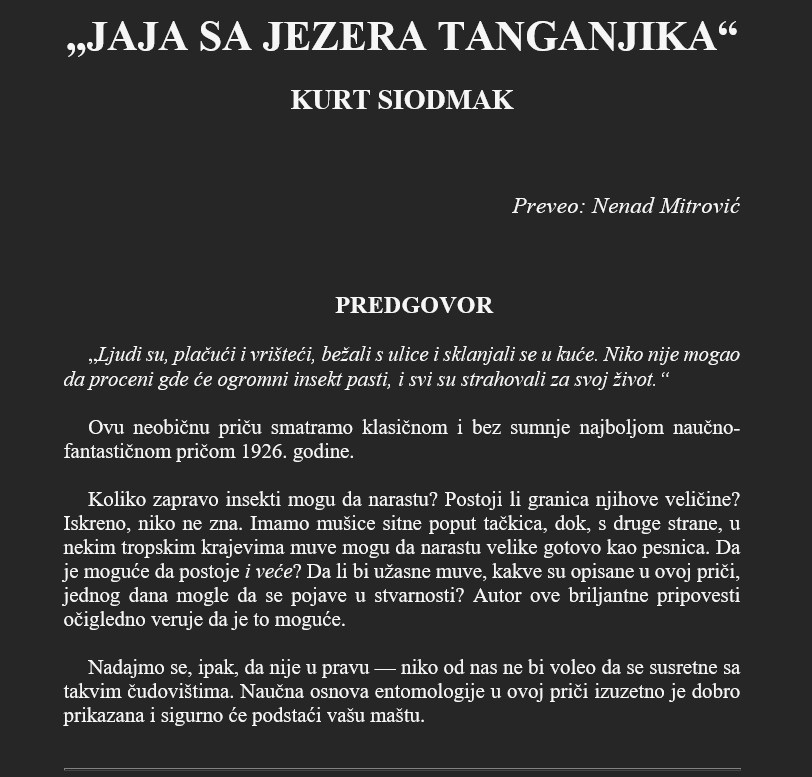 PREDSTAVLJAMO KLASIČNU PRIČU FANTASTIKE: „JAJA SA JEZERA TANGANJIKA“ – KURT SIODMAK KRATKE PRIČE, MEDIJI, NEOBJAVLJENO, PREDSTAVLJAMO AUTORA